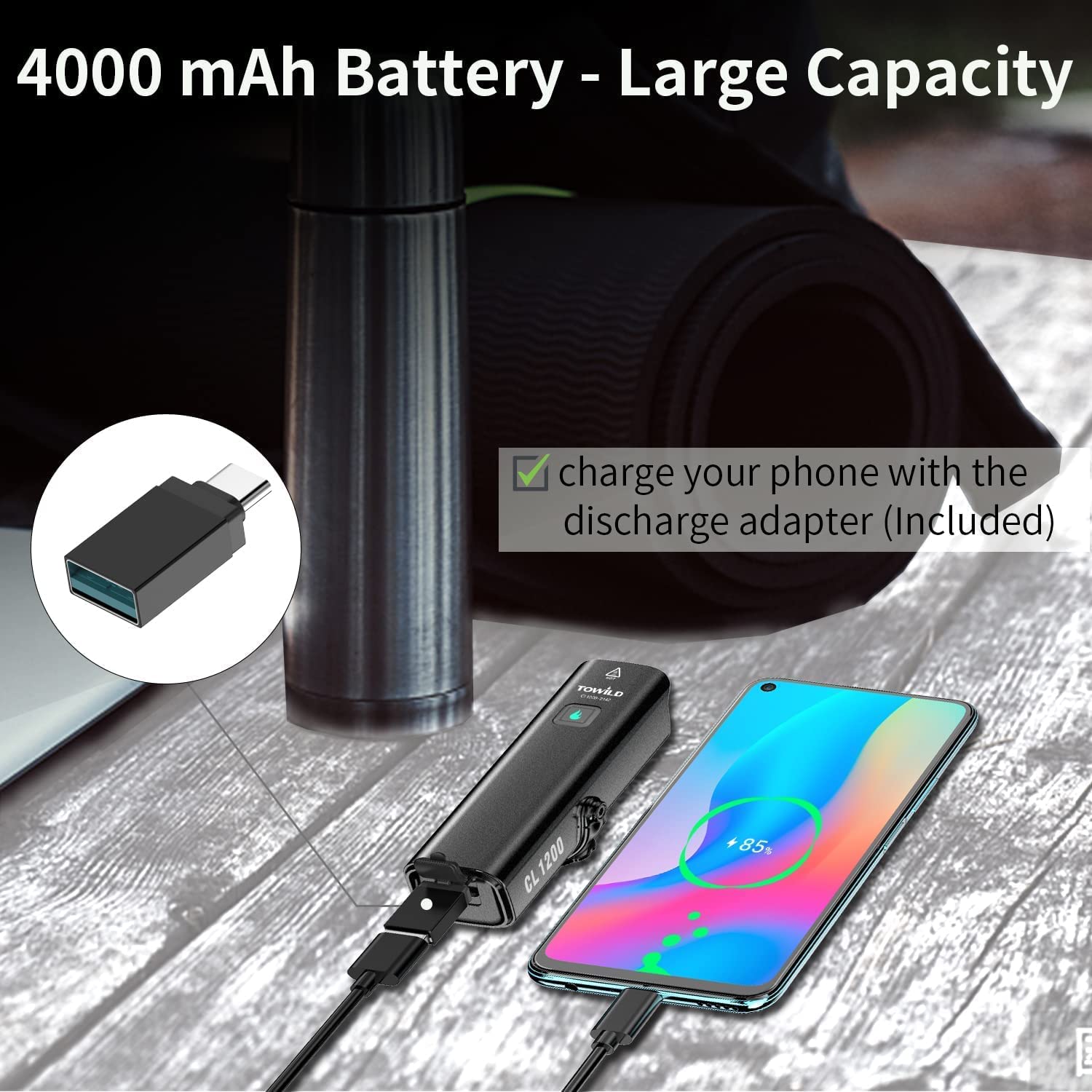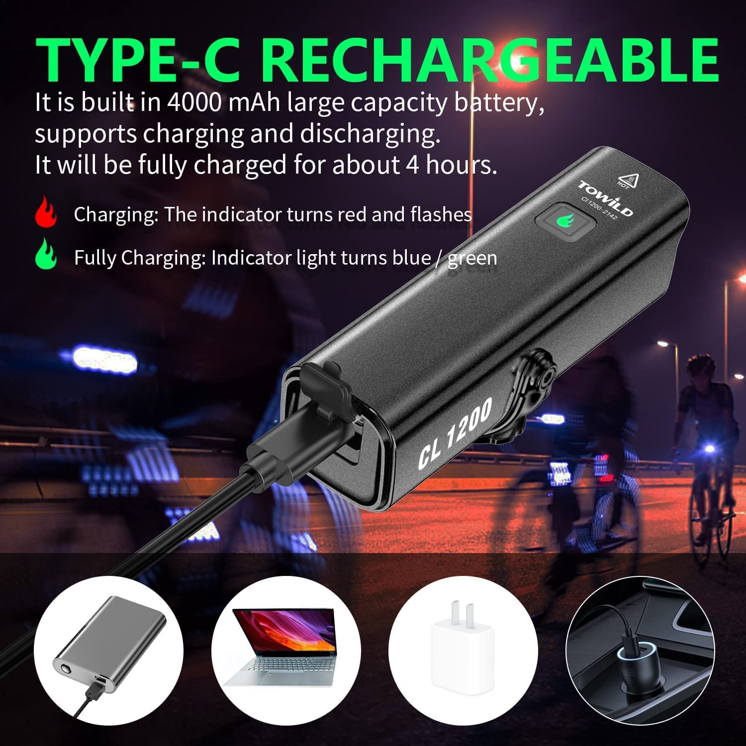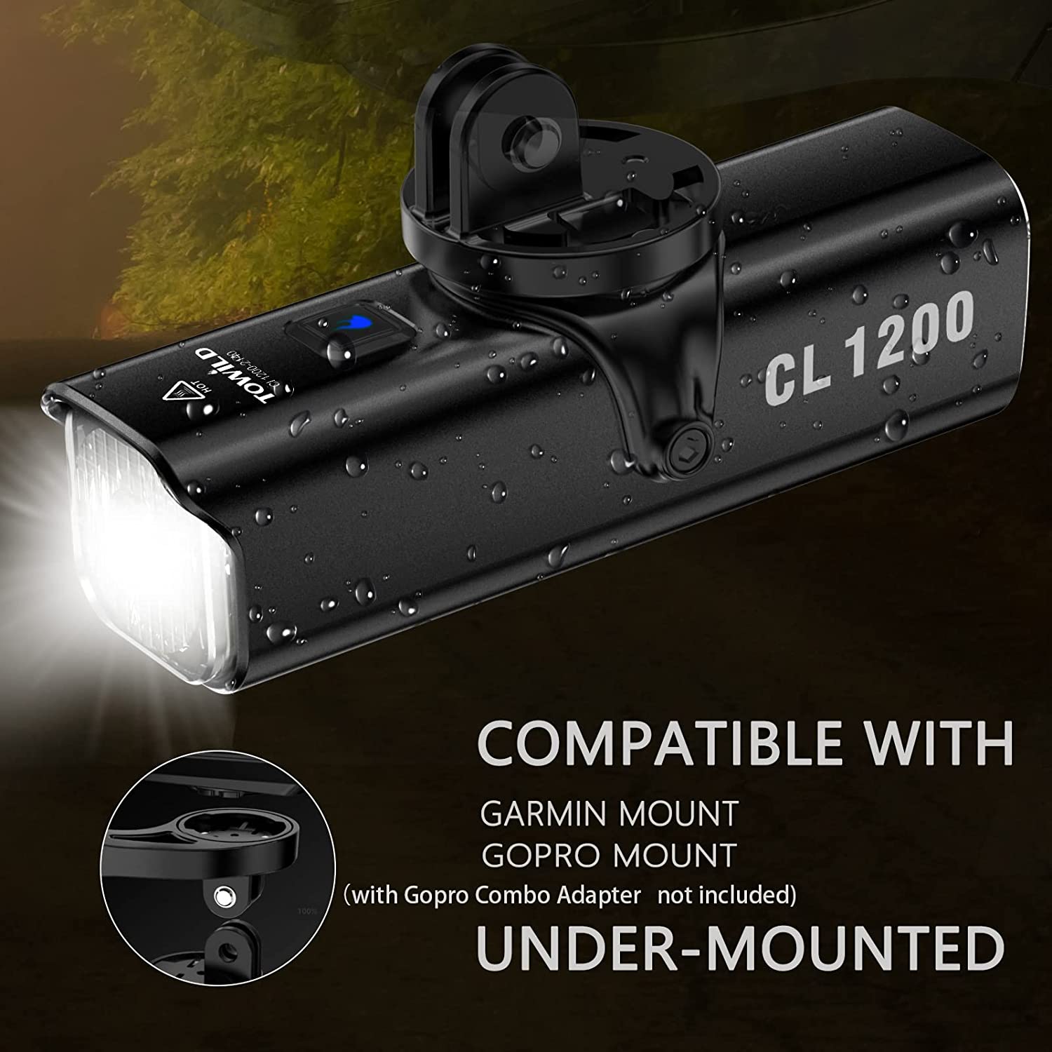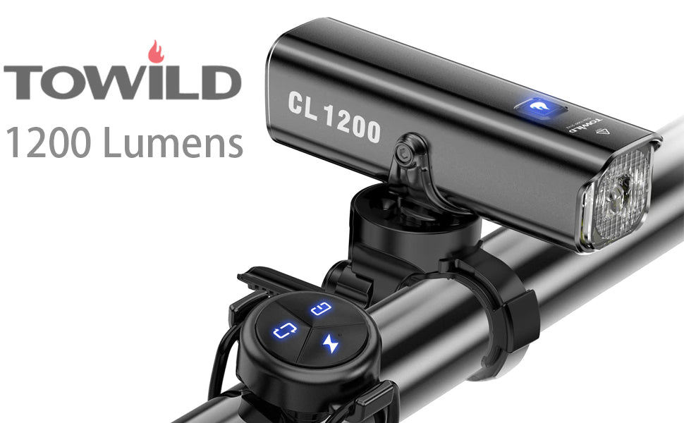 TOWILD CL1200 Bike Lights for Night Riding,Compatible with Garmin/GoPro Mount,1200 Lumen Bright Bike Headlight,4000mAh Rechargeable Battery,Waterproof Bike Front Light for Commuter Cyclists